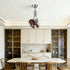 Rustic Modern Style – Industrial cage housing with walnut blades adds a distinctive decorative touch.